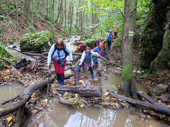 Hiszen jócskán kapaszkodva haladhattunk csak a patakmeder szélében a sziklafal alatt. Ki is
